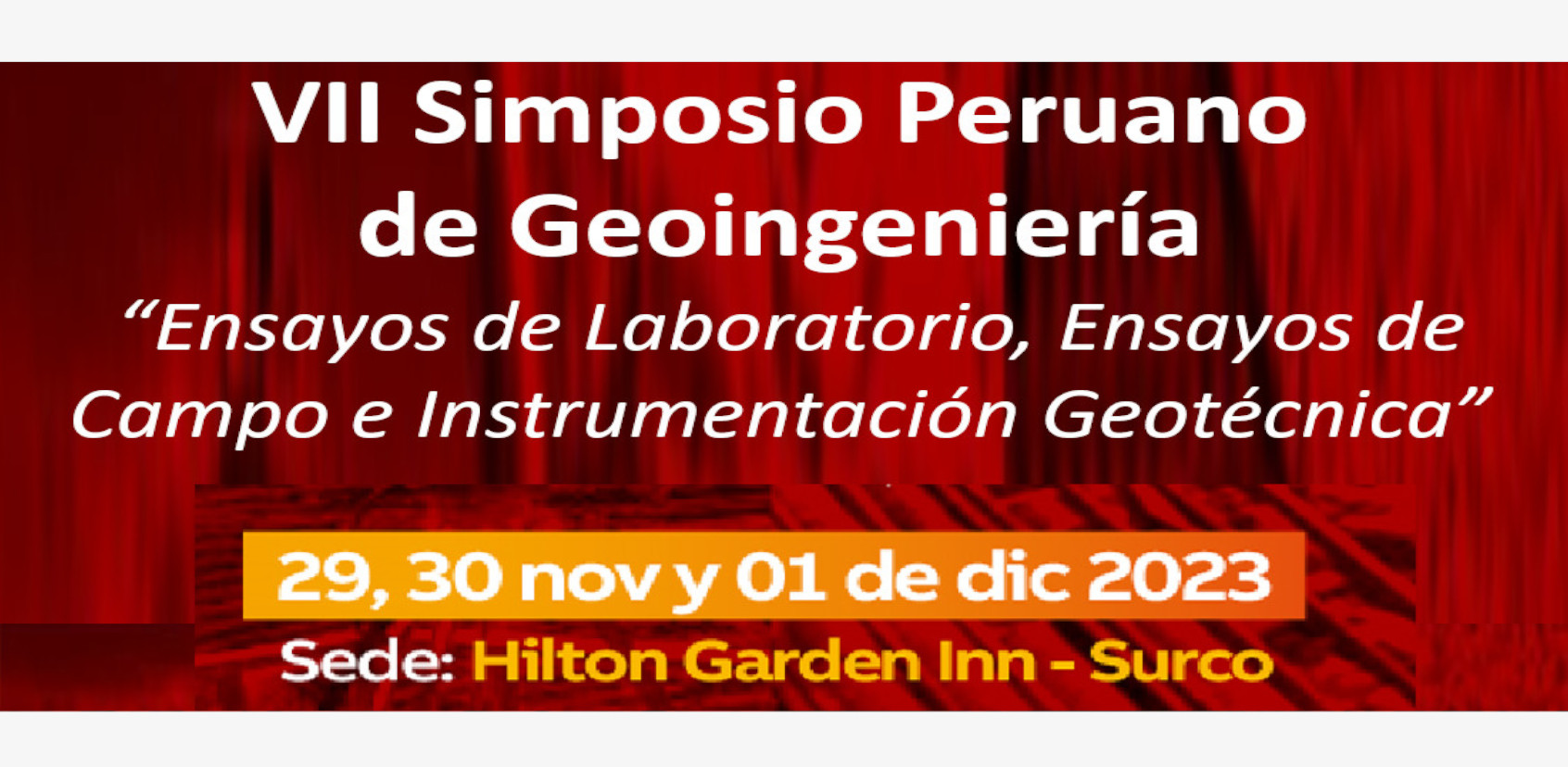 "VII Simposio Peruano de Geoingeniería" - Bajo el lema "Ensayos de Laboratorio, Ensayos de Campo e Instrumentación Geotécnica", tuvo como objetivo promover el desarrollo tecnológico, difundiendo los resultados de las investigaciones y aplicaciones en proyectos reales realizados por instituciones de investigación como universidades, empresas públicas y privadas dedicadas al rubro de instrumentación geotécnica. Ir al sitio... |